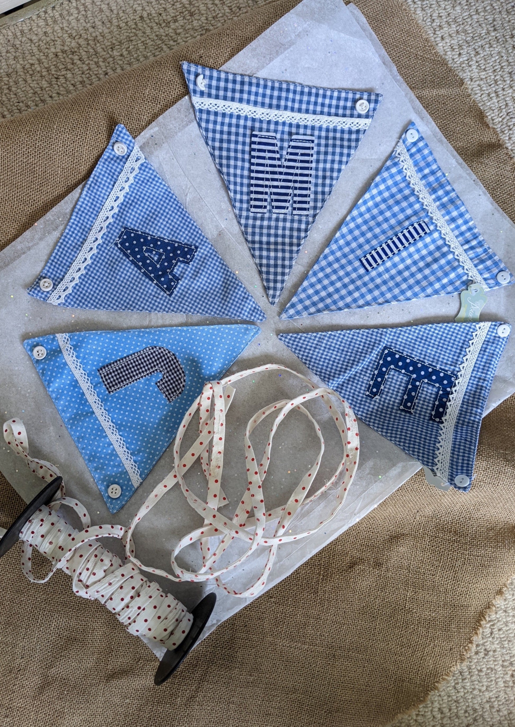 Blue fabric bunting letters