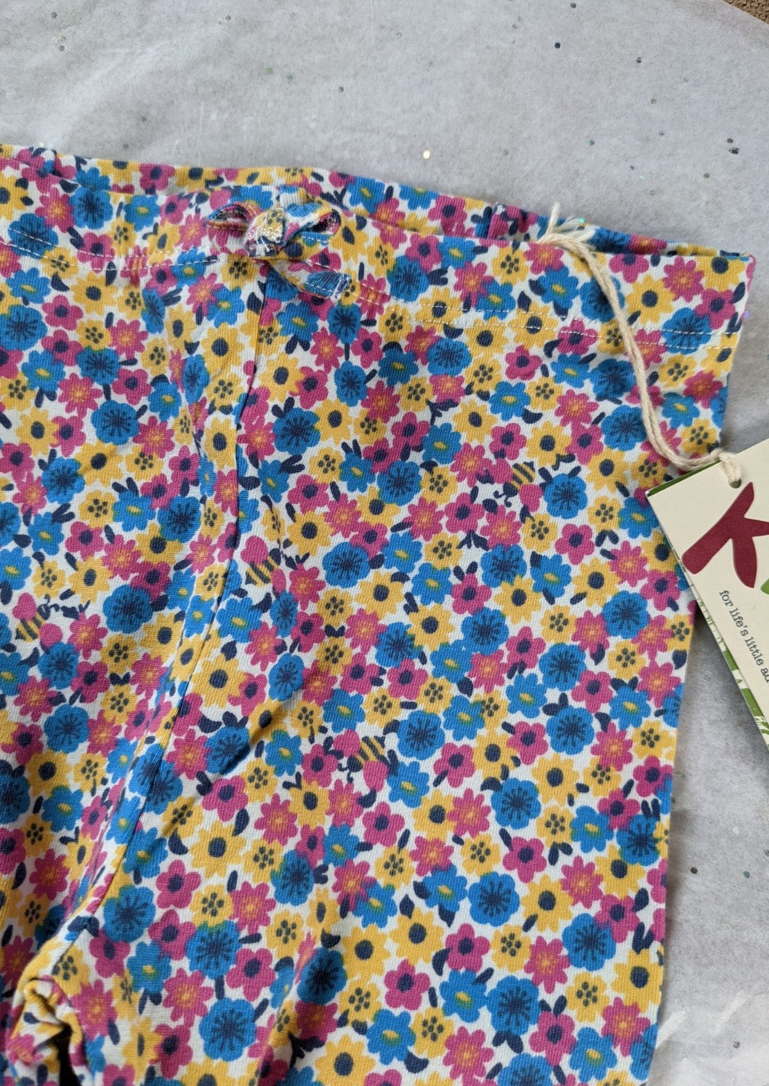 Bright sunshine yellow cotton T with a happy flying unicorn appliqué on the front. Coconut shell buttons at the shoulder. Very soft to the touch with a round neck andshort sleeves. Made in Turkey. Bottoms are in a ditsy print to match the unicorn top.